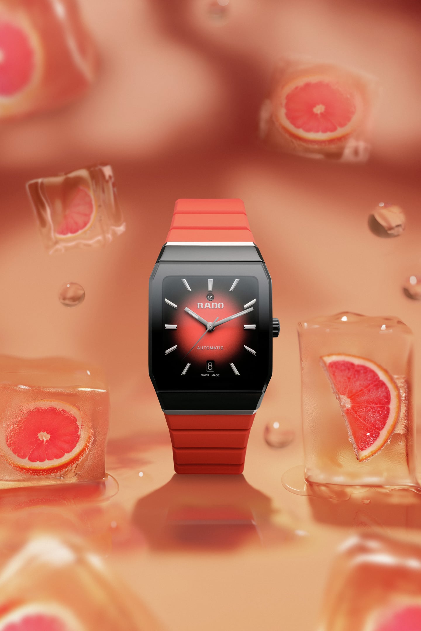 These latest timepieces build on Rado’s legacy of ergonomic design and material innovation, now reimagined in vibrant tones inspired by grapefruit red, lime green, and lemon yellow.