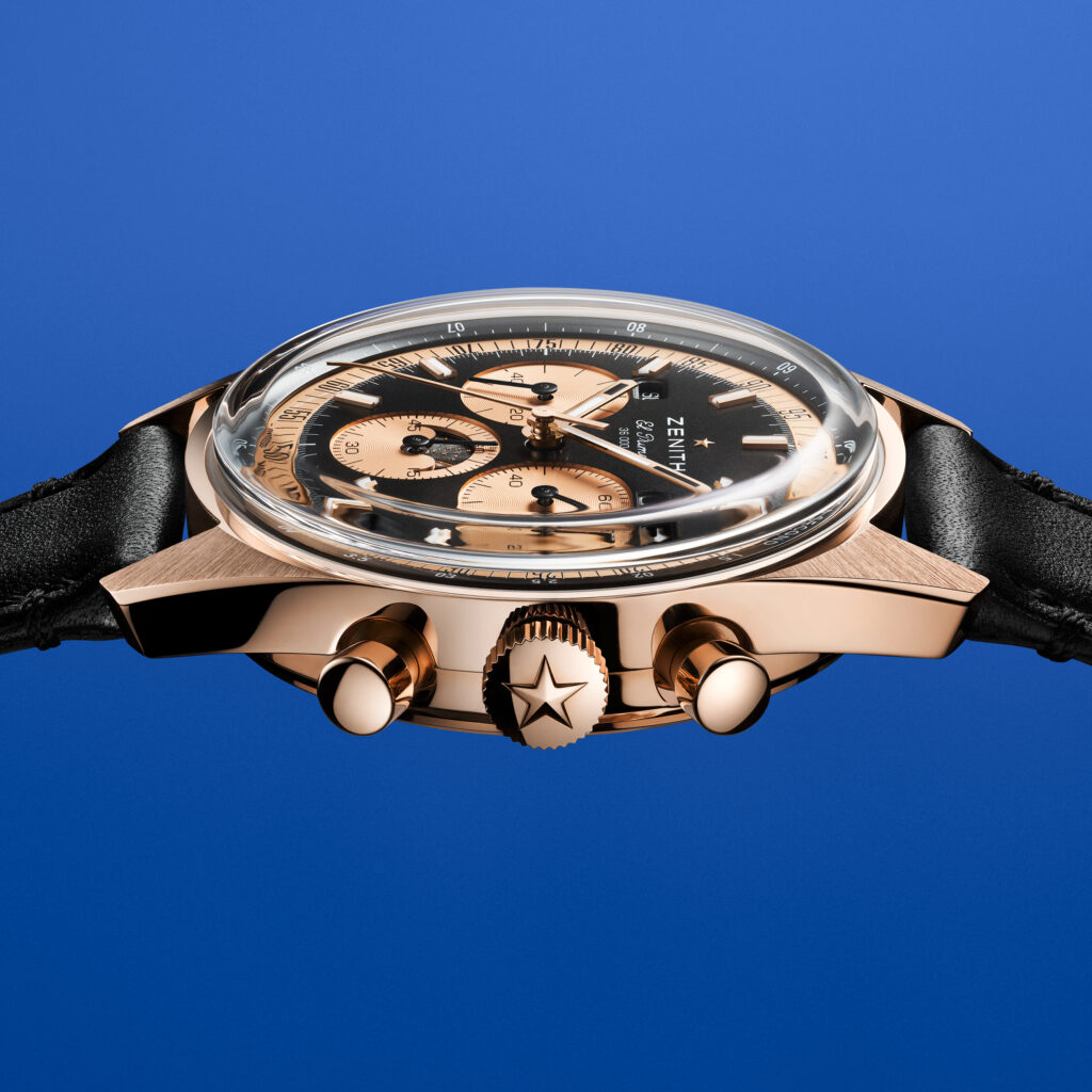 The CHRONOMASTER Original Triple Calendar in rose gold is presented on a black calfskin strap with an 18-ct rose gold folding clasp. It is available at ZENITH boutiques, online, and through authorized retailers worldwide.
